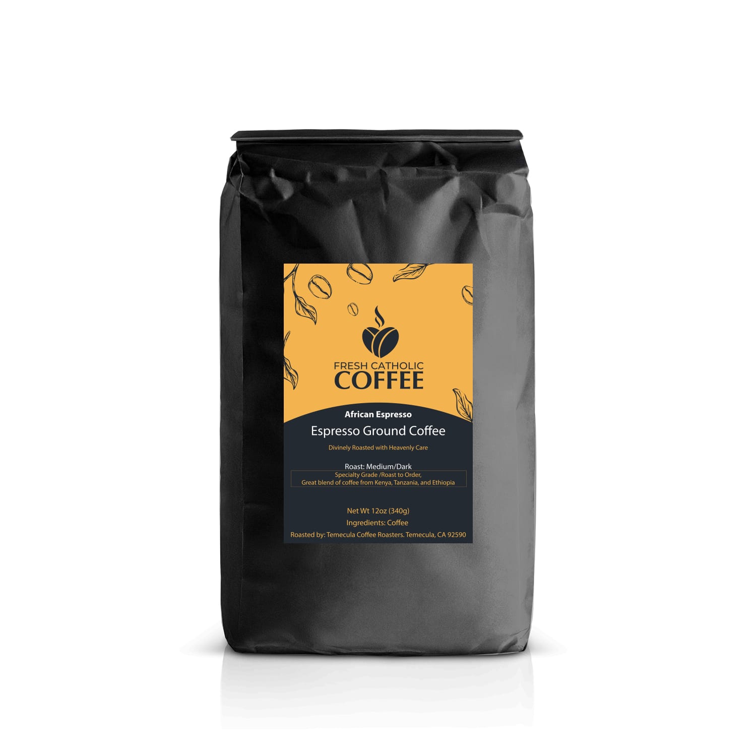 Embark on a coffee journey with Fresh Catholic's African Espresso—a captivating blend meticulously crafted with beans from Kenya, Tanzania, and Ethiopia. This medium-dark roast is a harmonious fusion of distinct African flavors, offering a rich and bold taste that transcends ordinary coffee experiences. Our African Espresso takes you on a sensorial adventure, capturing the essence of the lush coffee landscapes of three renowned African regions. The medium-dark roast profile enhances the complexity, delivering a robust flavor with subtle undertones. Immerse yourself in the vibrant coffee culture of Africa, where tradition meets innovation in every sip. Elevate your coffee ritual with the spirited blend of Fresh Catholic's African Espresso—a celebration of the rich coffee heritage that extends from the heart of Kenya to the highlands of Ethiopia and the plains of Tanzania.